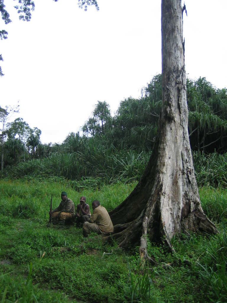 Parc de Lobéké _ Les compčres, de gauche ŕ droite : Achille, le porteur, Dessailly