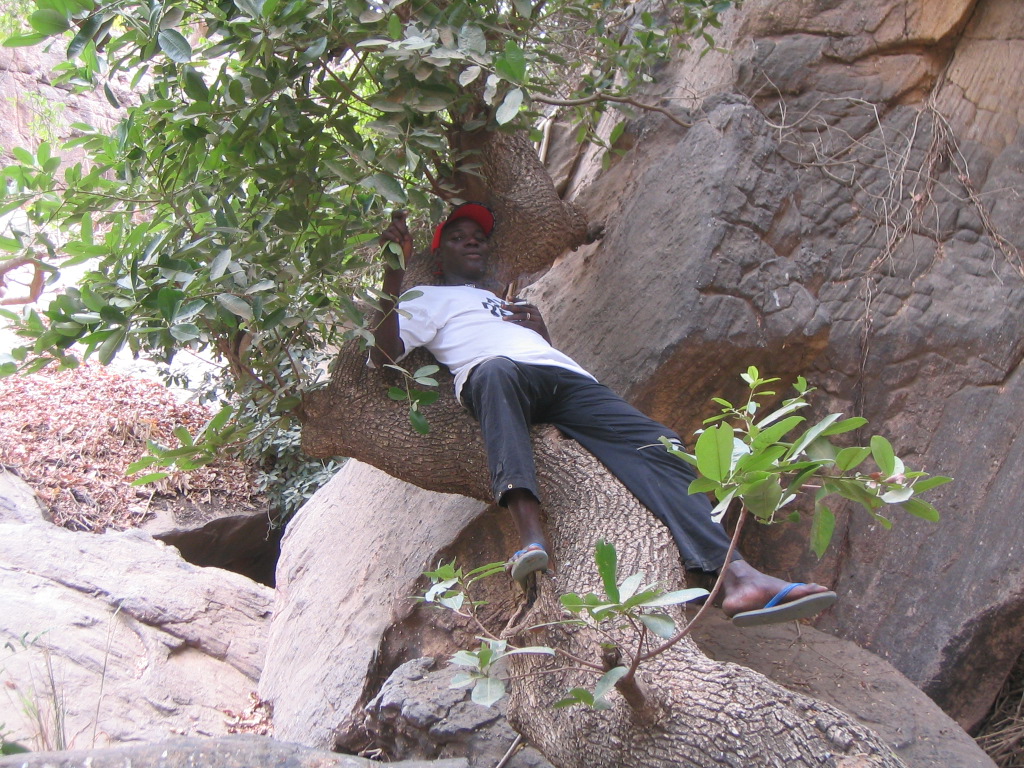 Pays Dogon _ Marche avec Abdoulraman _ Votre correspondant, et un gars qui fait des cordes dans le ruisseau