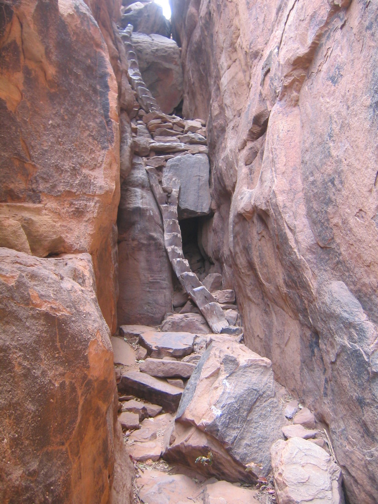 Pays Dogon _ Etroite faille aménagée d'escaliers intrépides