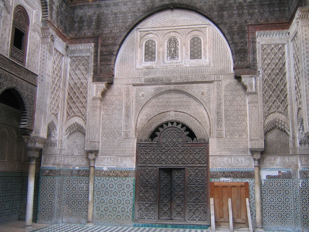 Fès _ Médersa Attarine _ façade intérieur _ photo au dessus précédente