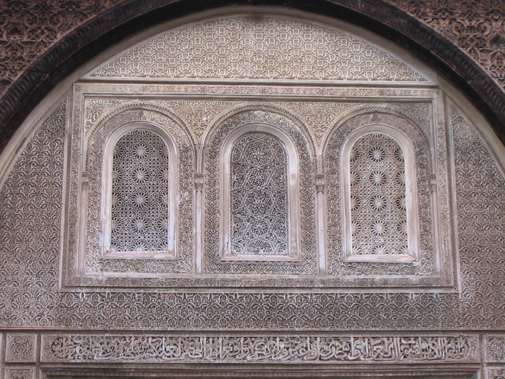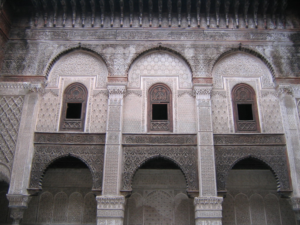 Fès _ Médersa Attarine _ fenêtres cour intérieure