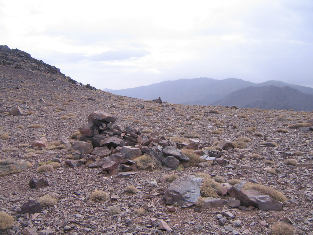 Haut Atlas _ Ascension du Toubkal _ Ombre sur les cairns du sommet