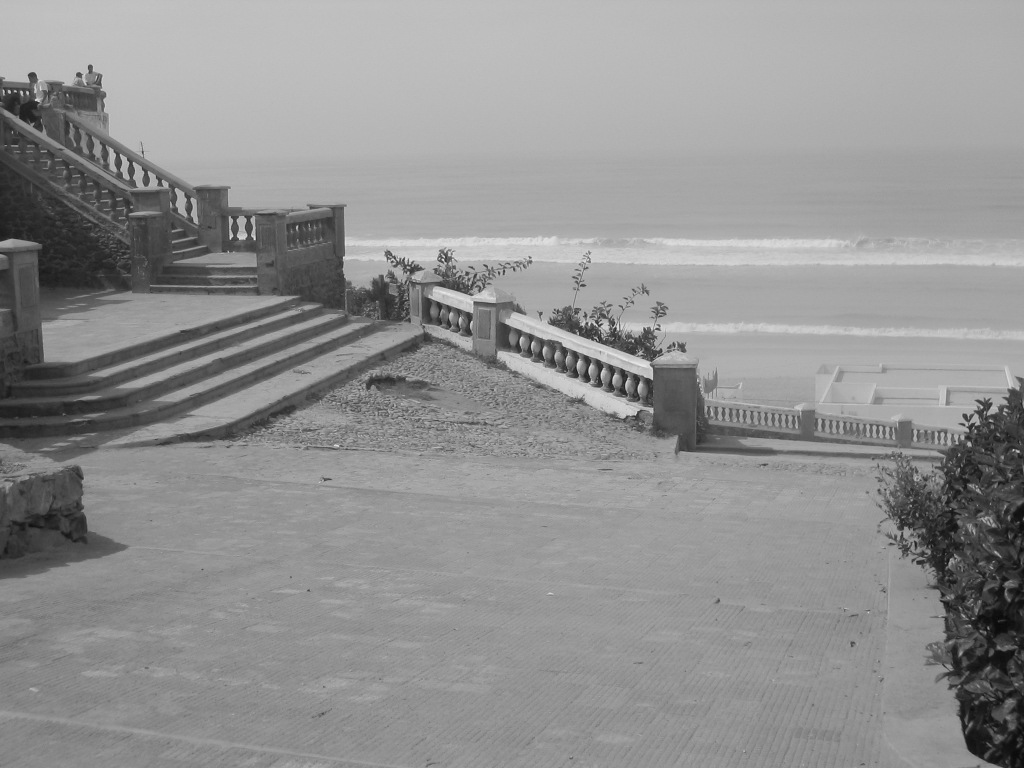 Sidi Ifni _ Balustrade et plage, essai en N&B