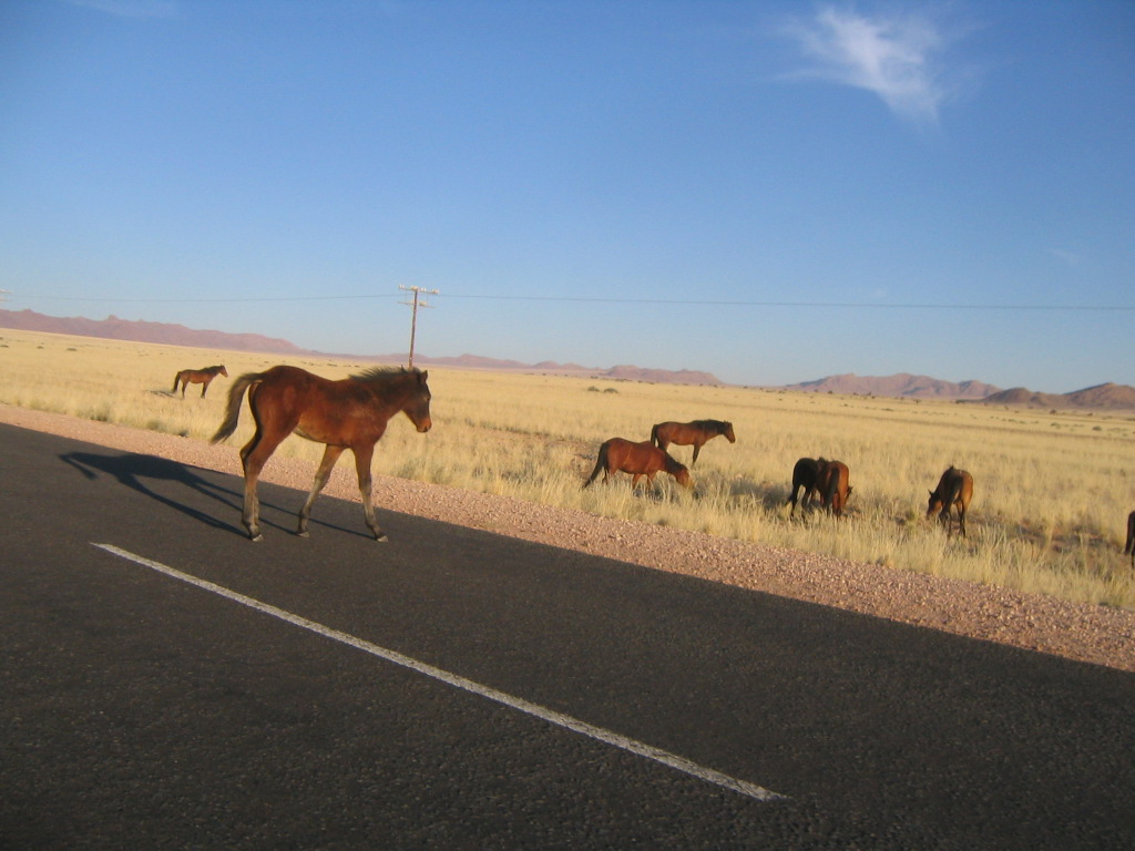 Retour Luderitz _ Chevaux traversant la route
