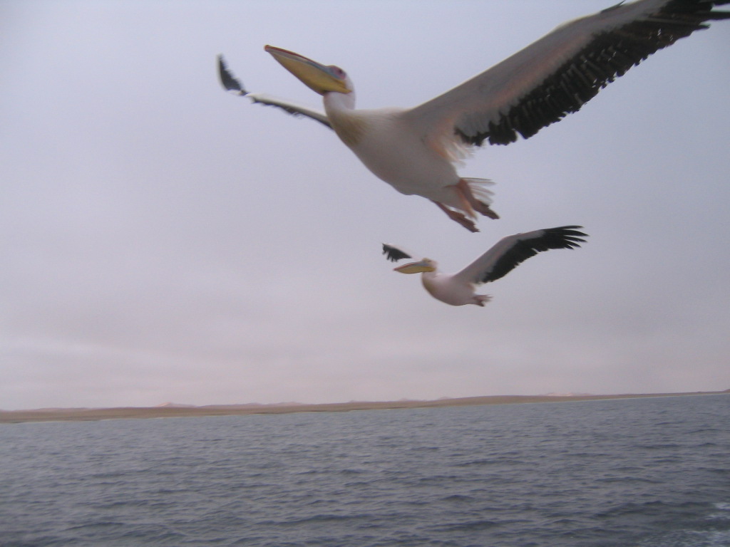 Tour _ Walvis Bay _ Pelican en vol plane